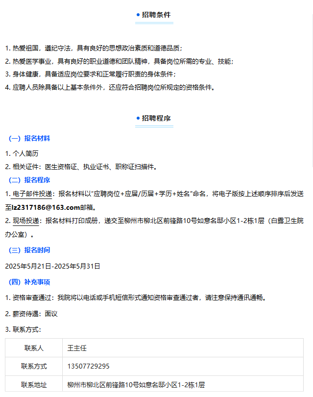 2025年柳州市柳北區(qū)白露衛(wèi)生院編外聘用衛(wèi)生專業(yè)技術(shù)人員2人